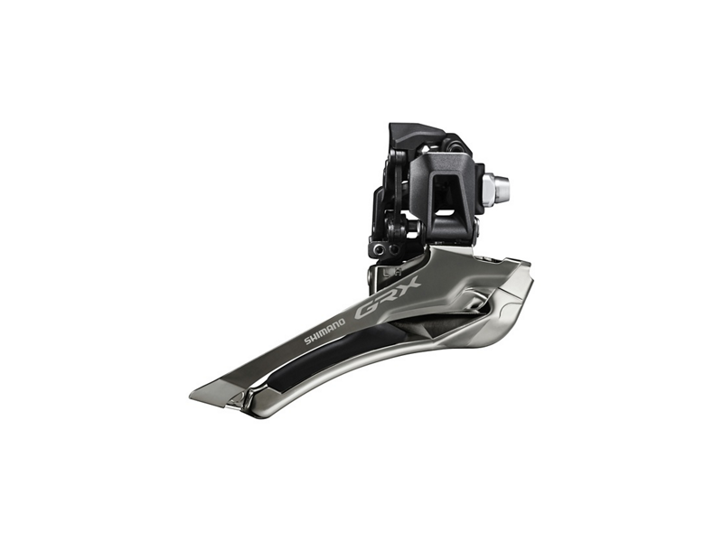 The SHIMANO GRX RX-820-F front derailleur offers easier and smoother chainring changes and setup, thanks to the toggle mechanism and integrated cable tensioner. Features include a 2.5mm external chainline that provides increased tire clearance for mixed terrain and is compatible with 17T chainrings to increase gear range.