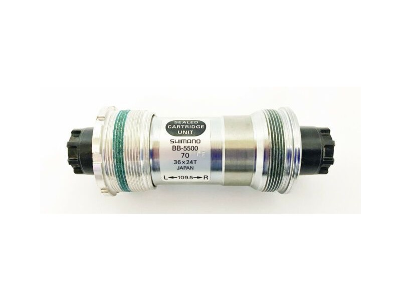 The Shimano BB-5500 OCTALINK ITA 70x109.5 mm bottom bracket is designed for road bikes and offers high performance. The bike requires a 70 mm wide bottom bracket shell. Sealed industrial bearings are protected from dust, dirt, and water. This model is available in several widths and shaft lengths.