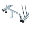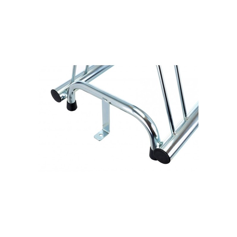 5 spaces bike rack in galvanized steel, silver cold with black pvc caps. Bike rank system high and low in order to avoid handlebars to get wedged each other. A fascinating design conforming to any type of environment and style.