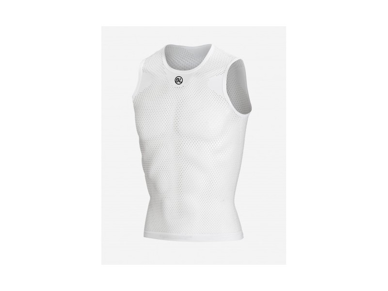Seamless and sleeveless mesh jersey. Creates a barrier between the body and outer jersey, drawing away perspiration and drying quickly. Perfect for the hottest days.
