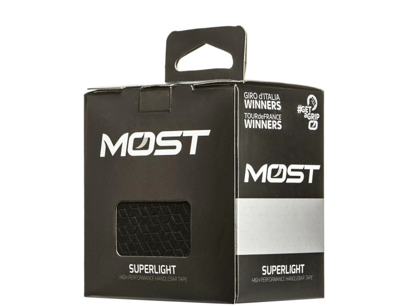 Most Superlight Bar Tape is made with 3mm EVA vibration-damping foam. The perfect combination of suede soft-touch finish gives you an incredible grip and comfort in all weather conditions. A brand-new pattern makes it very stylish. Easy-stretch tape with feathered edges makes the finished wrap smooth and low profile. Superlight! Less than 50g per set.