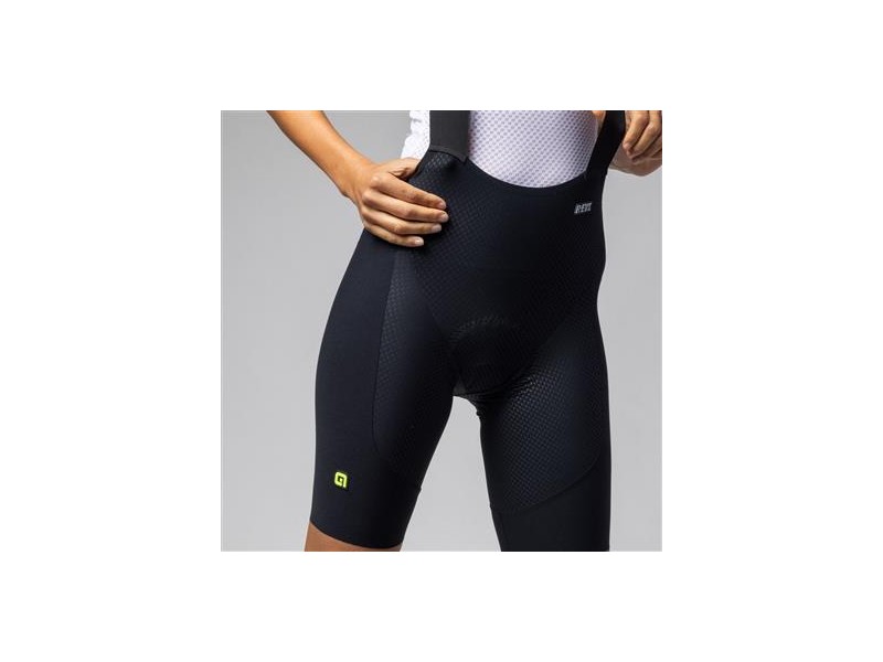 Minimal seams, an anatomically optimized fit, a raw-cut finish on the legs, and the latest fabric that provides targeted compression for improved venous return and built-in sun protection. Through the process of calendering, the Air Fix Snake fabric applied between the legs ensures better adherence to the saddle for consistent power. The proven X-Air Bib design minimizes surface area against the skin while maintaining stability for the shorts at all times